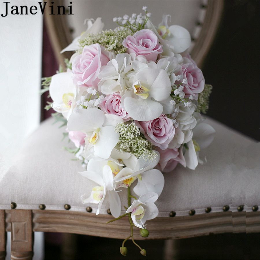 Brautstrauss Wasserfall Kunstliche Blumen Rosen Orchideen Pink